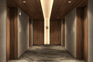 エレベーターは2ヵ所に分かれて計6基、1基あたり約90戸ですから多くはないですがこんなものでしょう。