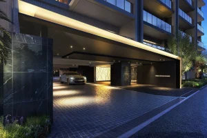ただでさえ広くない土地に対して1階部分に店舗も入るためエントランスアプローチも風除室とホールもこじんまりとしてはいるもののアプローチはできるだけ奥まらせて間接照明で夜の雰囲気も良さそうですし、風除室とホールも鋳物調パーテーションやガラスアート、金物オブジェなど単調ではなく全体的に高級感あるものとなっています。とはいえ単価帯からするとかなり狭いためそこを求めるなら北仲のタワマンなどを選んだほうがハッピーでしょう。