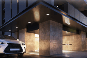 駐車場は屋外機械式が主ですが設置率約75%と今の時代の新築マンションとしては多いですね。この辺りは土地形状が整った二面接道らしさを活かせています。