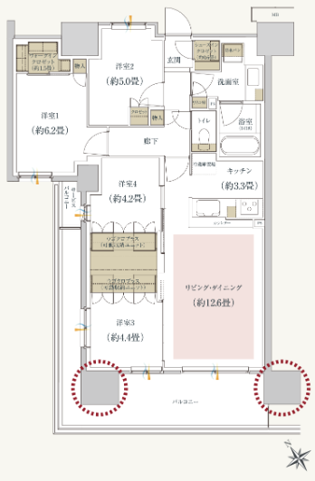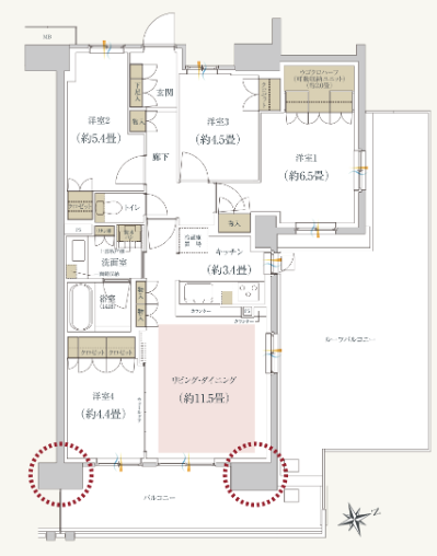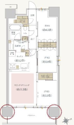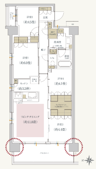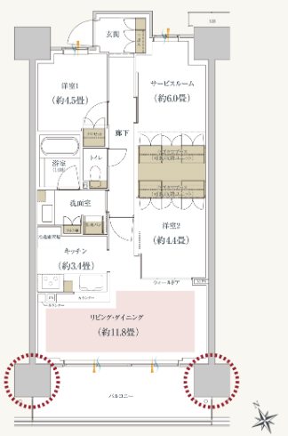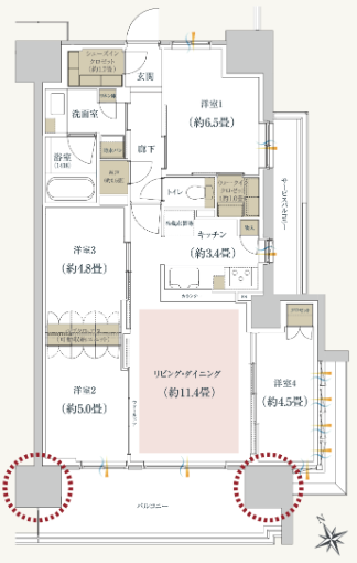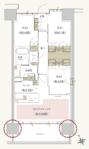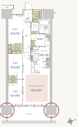ただ、日当たりと眺望が優れた住戸ばかりでありながらも連窓サッシでないプランが多いのは惜しいですね。