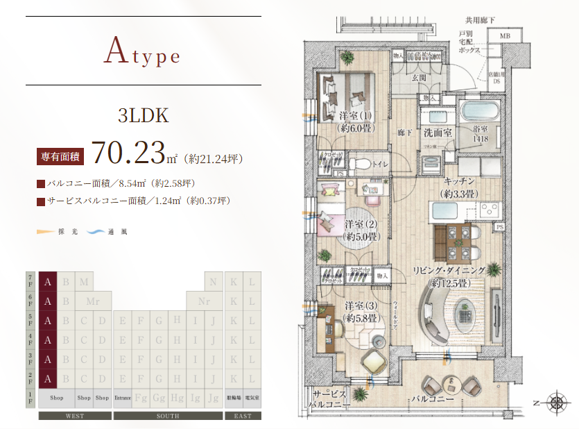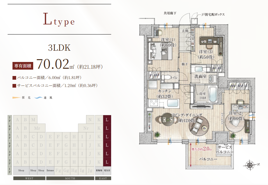 L 3LDK 70.02㎡ 4階 6858万円 → 6180万円(築10年と想定)