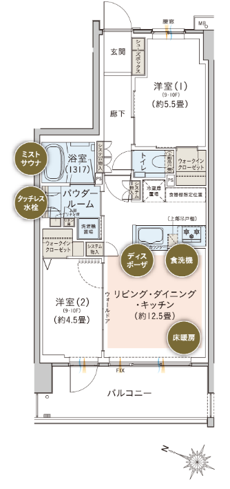 管理費は㎡単価月額268円、ディスポーザーありですから納得度の高い水準と言えるでしょう。