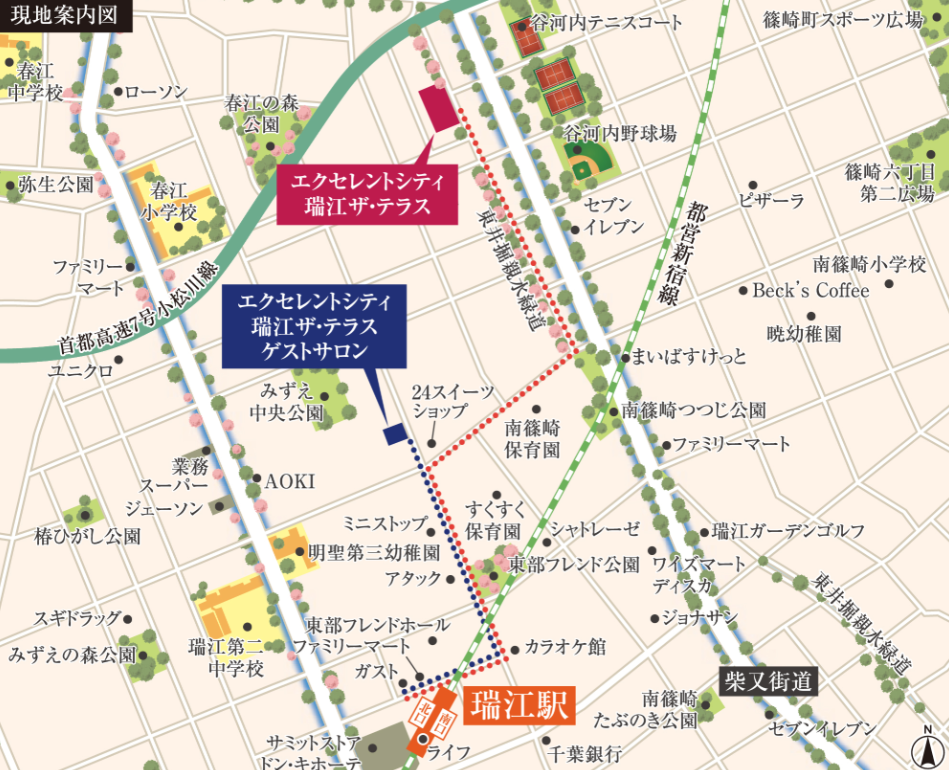 京葉道路のほんの少し手前ですから駅距離はあるものの篠崎公園がすぐ近くというのは今作のスペシャルポイントとなってくるでしょう。