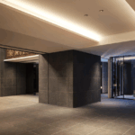 外観デザインも2種類のガラス手摺にマリオン、さらに一部フロアの軒裏を木調とするなど変化を感じられてカッコいいですね。バルコニー隣戸境もしっかりとスラブtoスラブの隔て板もしくはコンクリート&隔て板となっています。