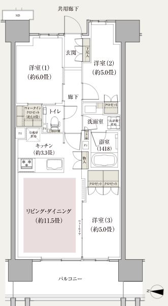B3 3LDK 68.85㎡ 8階 9798万円 → 8580万円(築10年と想定)