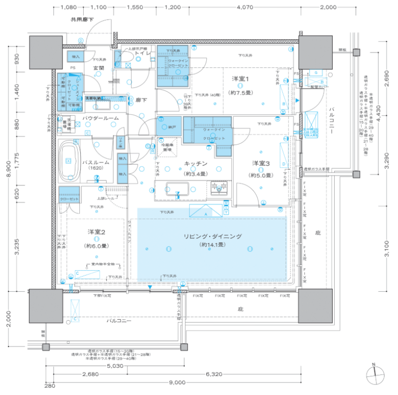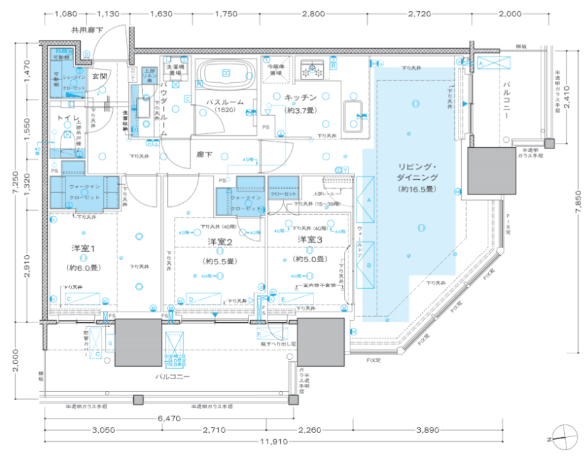 共用施設への乗り換え考慮のためなのか高層用エレベーターが16階に停止するのは区間急行みたいで高層フロアにお住いの方からするとちょいとモヤっとしそうですね。(それゆえ16階の人は便利)