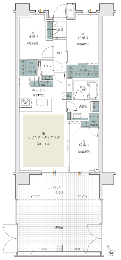 専有面積:59.62㎡~95.12㎡(全体35.51㎡~100.50㎡)