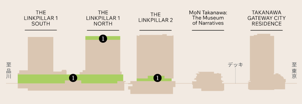 2026年3月には田町駅寄りにTHE LINKPILLAR 2(ジェクサー高輪も入る予定です)、そして今回ご紹介する高級賃貸マンションの高輪ゲートウェイシティレジデンスの入居が開始されることで横に長い車両基地跡地すべてが繋がることになります。