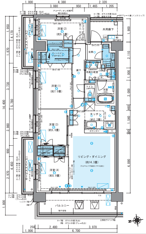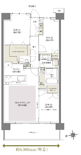 横に長い大規模板状マンションあるあるで選ぶ部屋によってメインエントランスまで距離があったりごみ置場まで距離があったりと横移動は多くなります。