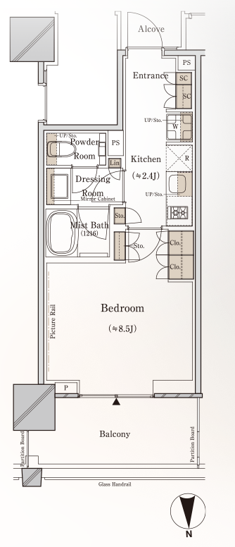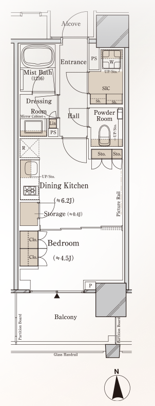 一概には言えないものの狭い部屋ほど坪単価が高くなりがちな中で盛られていません。