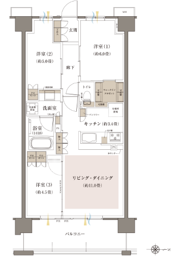 間取りは田の字が主ですが極端な専有面積調整はされておらず収納力も高いです。