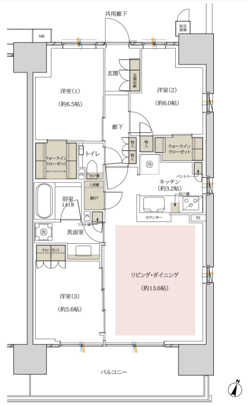 メゾネットタイプでも居室としては100㎡は大きく下回るなど広さのスペシャル感はありませんが極端な専有面積調整はなされておらず駅距離なりにゆとりを感じることができます。