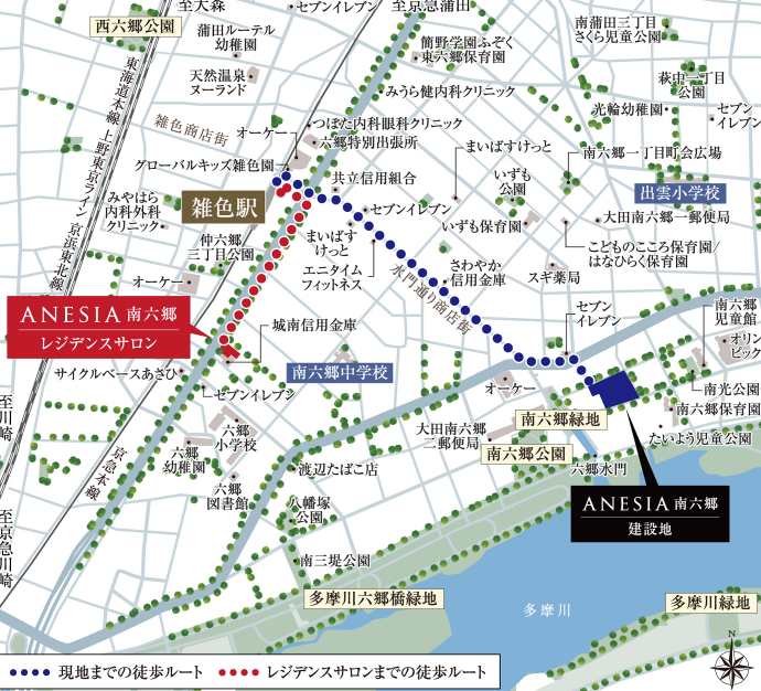 分かりやすい道のりではあるもののシンプルに駅から遠いですし、せっかくこれだけ歩いたのにイニシア大田六郷テラスと同じくリバーサイドでない点は惜しいですね。(これだけ歩くならザ・ガーデンズ大田多摩川のようにリバーサイドというストロングポイントがあると嬉しかった)