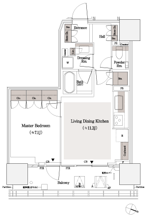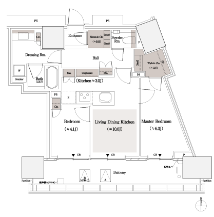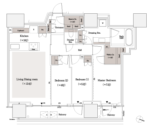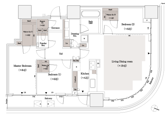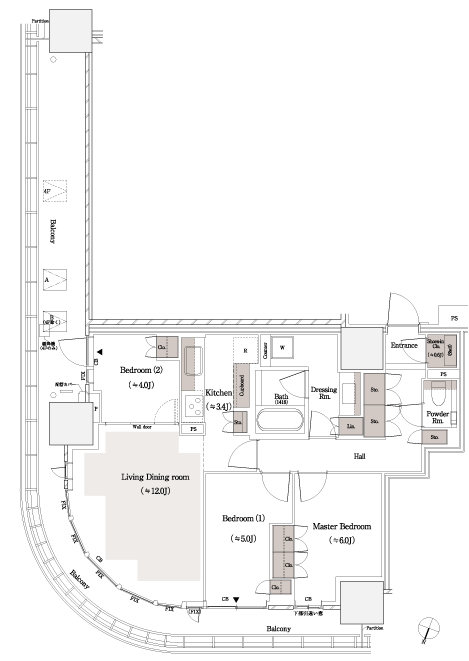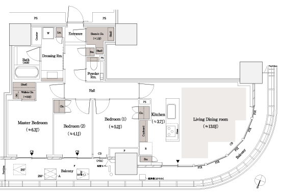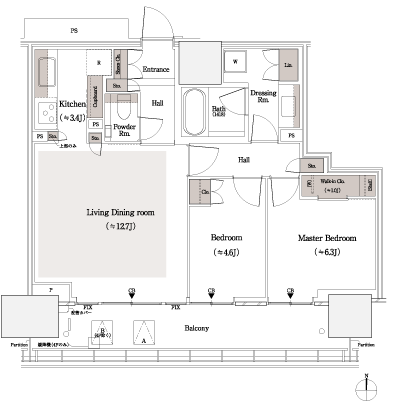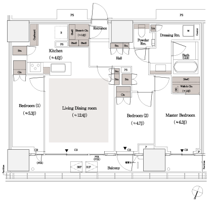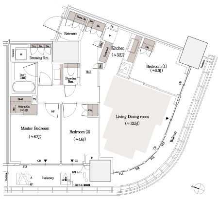 専有面積:47.88㎡(12戸)~102.48㎡(2戸)
