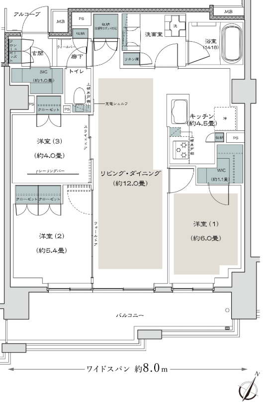 全住戸に充電シェルフとウォールバー(コートを掛けたり観葉植物を吊るせる)を設けたり部屋によっては玄関に大きな土間を設けたりと工夫を感じることができます。(田の字の金太郎飴ではないため選ぶ楽しみも◎)