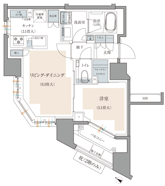 1フロア3戸(最上階は2戸)の内廊下設計となっています。