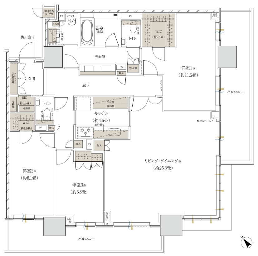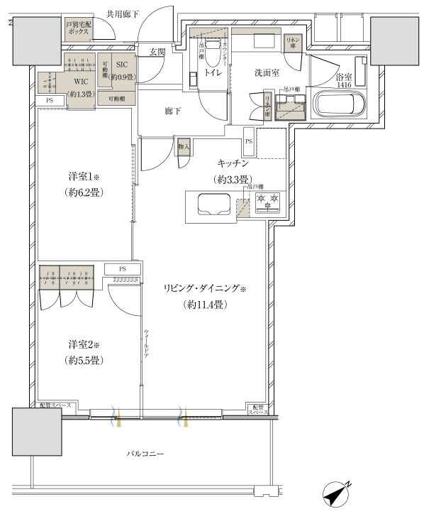 マンションの共用施設としてはフィットネスジムがないもののビビオにルネサンス、駅南側にジェクサーがありますからあえて入れなかったのでしょう。