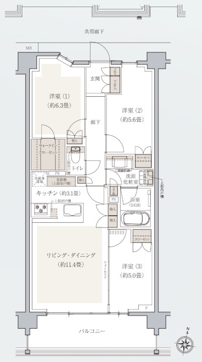 専有面積:69.86㎡~85.30㎡(全体61.48㎡~92.93㎡)
