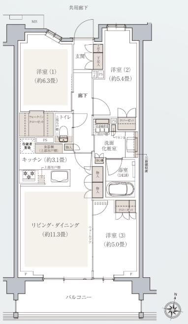 とくに角住戸に関しては廊下が長くなってしまうことで有効面積が削られていますし、狭い洋室が生まれてしまうなどスパンを取らないことでの弊害が多くなっています。