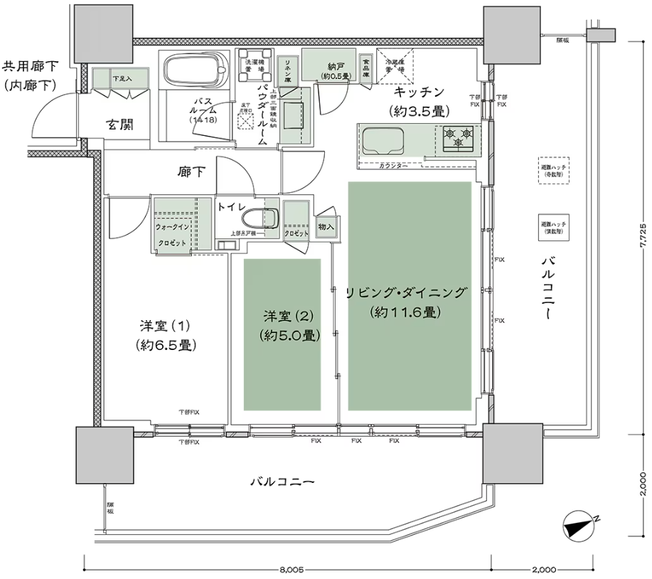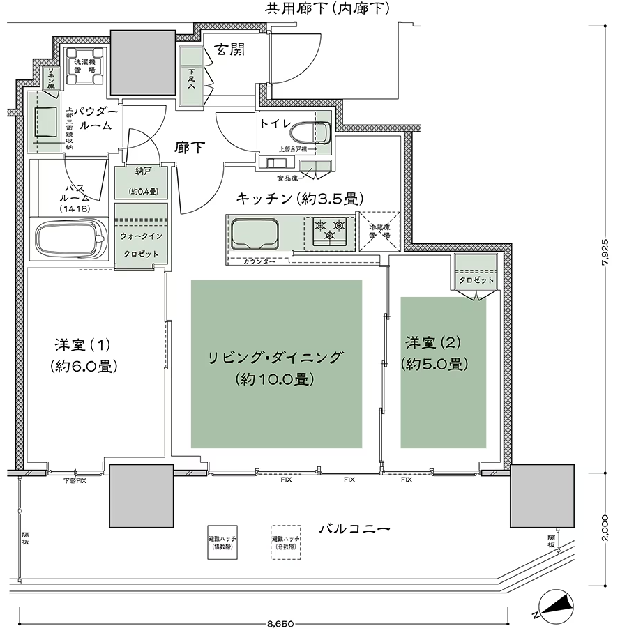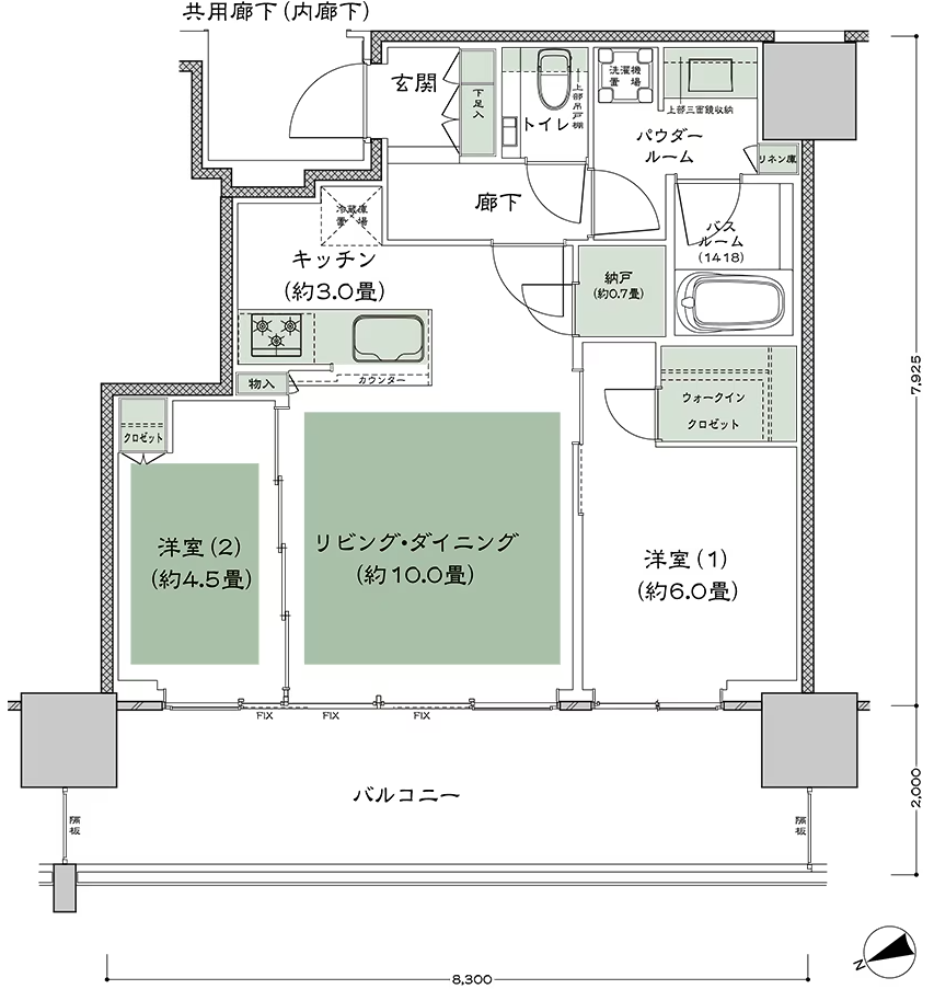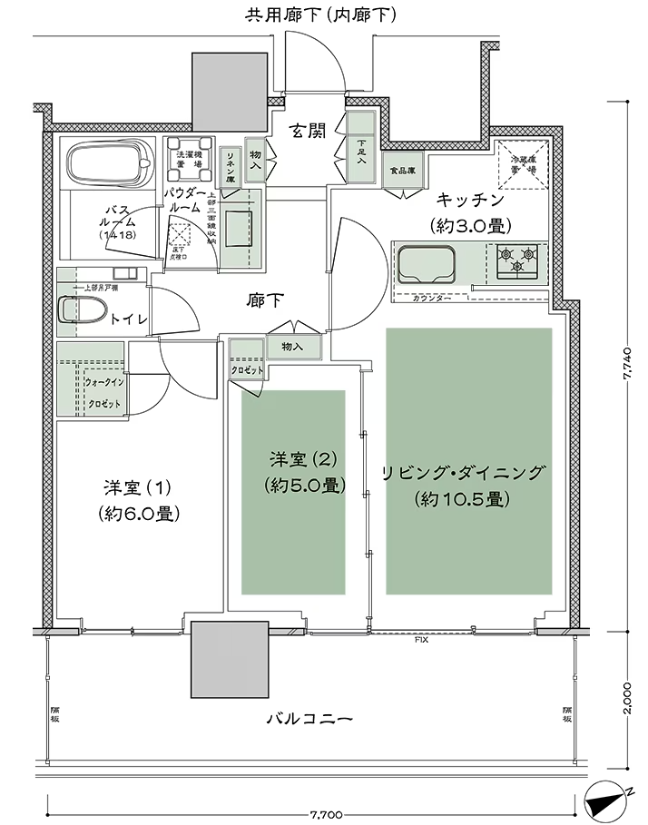 NE70B 3LDK 70.43㎡ 北向き中住戸