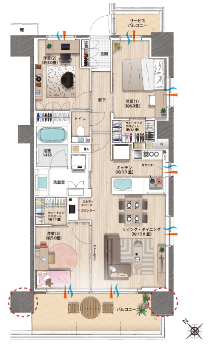 グロスは突っ張りますがルーバル住戸が設定されているのも面白いですね。(戸建とバッティングするこのエリアで6000万円は重たいですけども…)